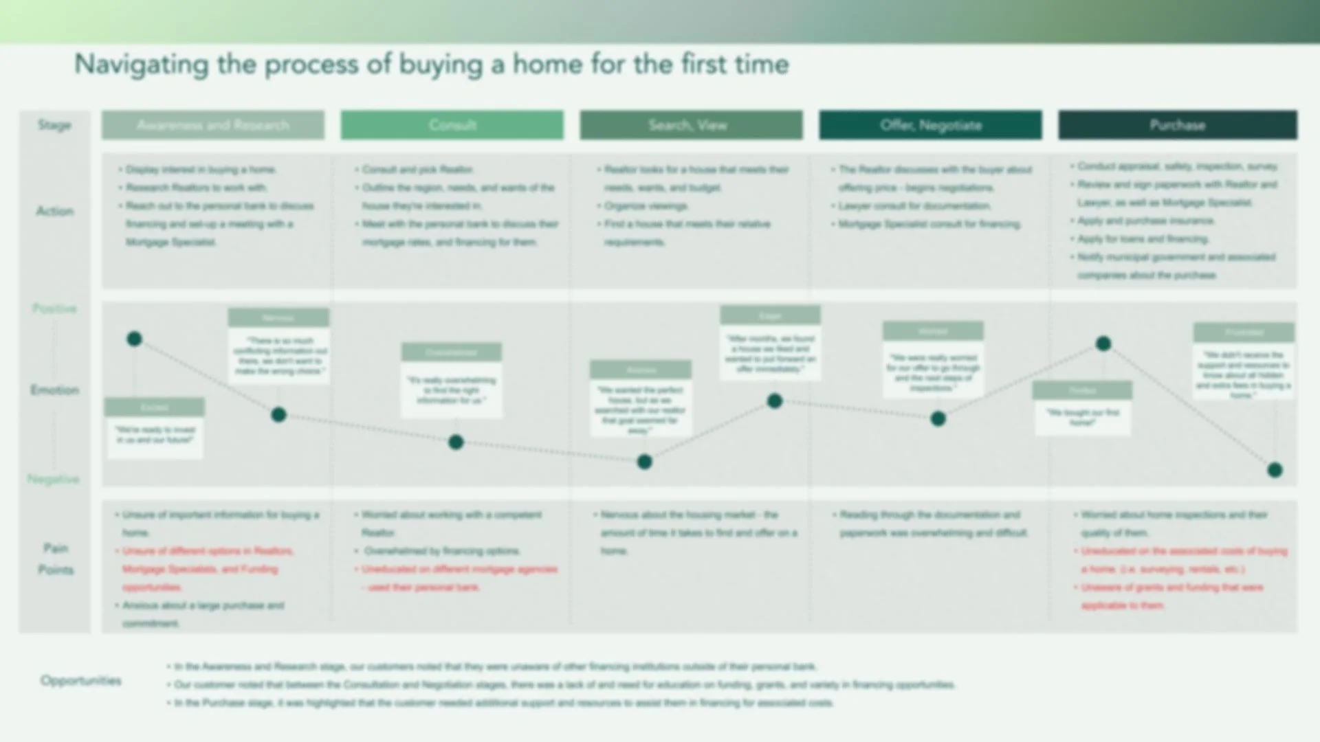 This approach allowed Grayce to develop a rich, empathetic understanding of the challenges faced by Canadian first-time home buyers, while identifying meaningful pathways to support more inclusive and accessible housing futures.